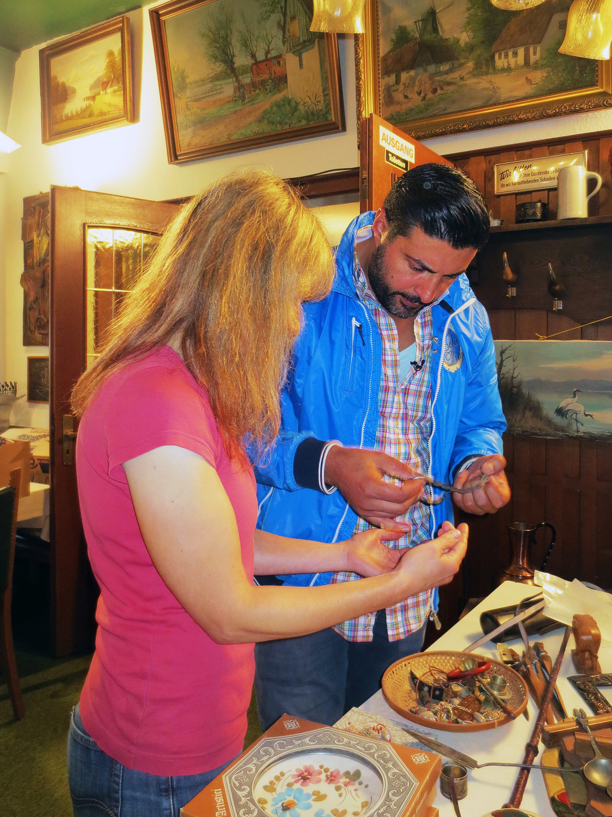 Folge 448Ulrike zeigt Trödelexperte Sükrü Pehlivan den Trödel in der Gaststätte.Bild: © RTL II