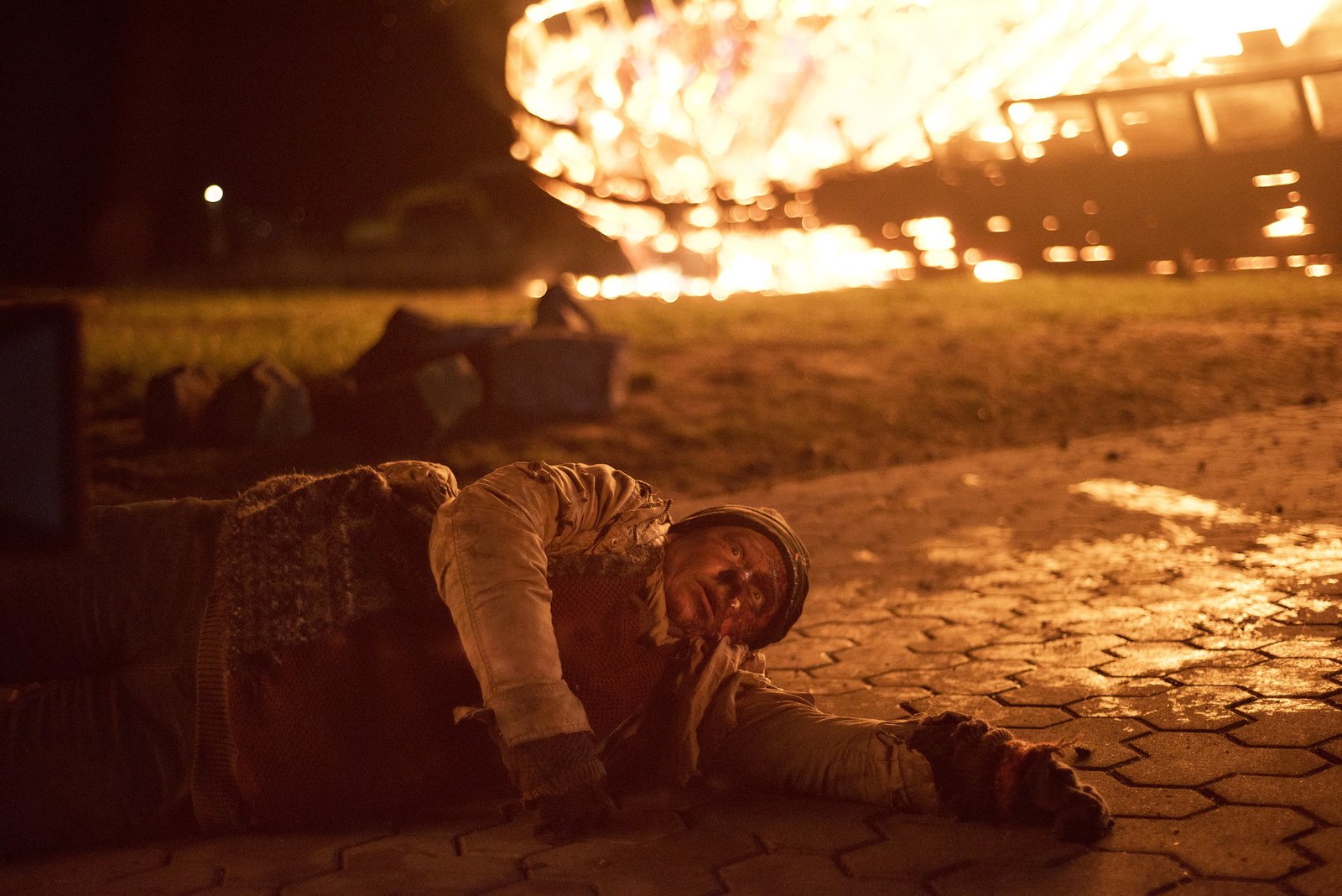 NebelwandNEBELWAND - der Usedom Krimi / Razor Film Foto: Oliver Feist/Degeto Steffie (Hildegard Schroedter) rennt aus dem brennenden Schiff.Bild: © Oliver Feist