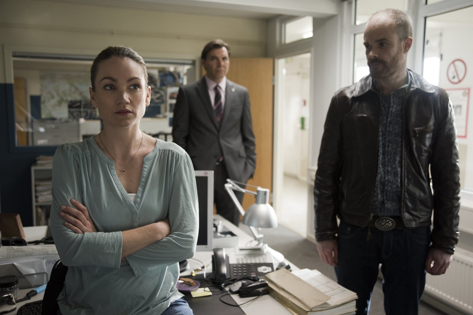 StrandgutWas weiß Dr. Brunner (Max Hopp) über die Tote? Ellen Norgaard (Rikke Lylloff) fühlt ihrem Chef auf den Zahn.Bild: © NDR/ARD Degeto/Oliver Feist