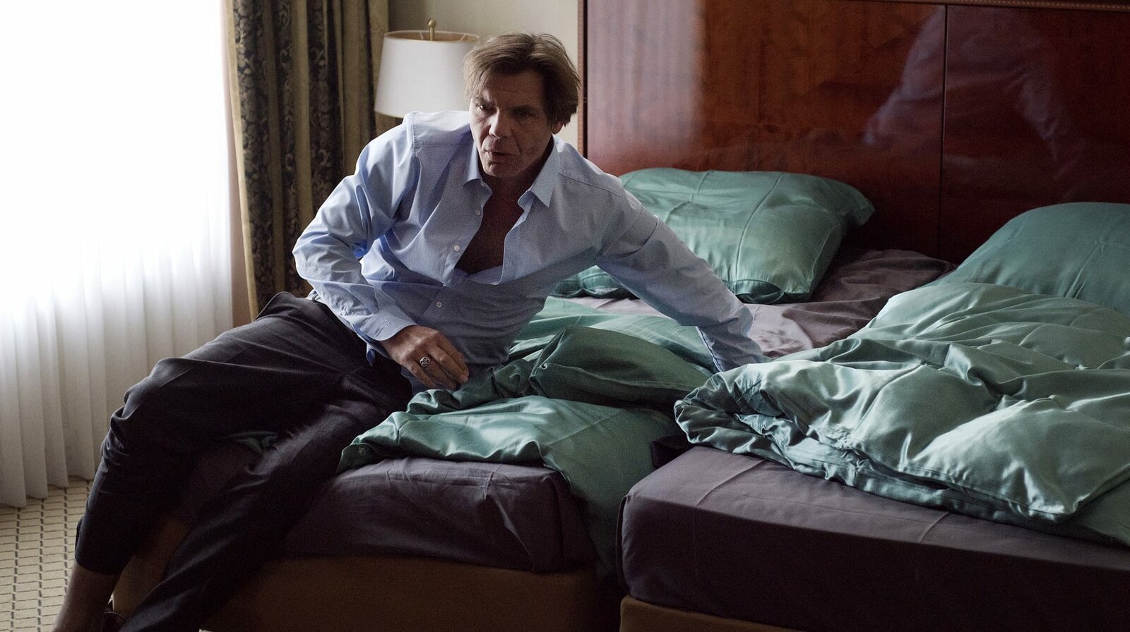 TräumeWas ist letzte Nacht passiert? Dr. Brunner (Max Hopp) erwacht in Ellen Norgaards Zimmer und erinnert sich an nichts.Bild: © NDR/ARD Degeto/Oliver Feist