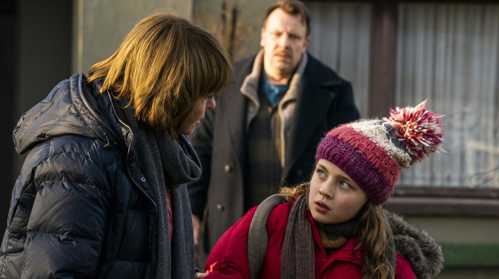 MörderhusHauptkommissarin Julia Thiel (Lisa Maria Potthoff) und die pubertierende Tochter Sophie (Emma Bading) im Gespräch mit Stefan (Peter Schneider).Bild: © NDR/Christiane Pausch