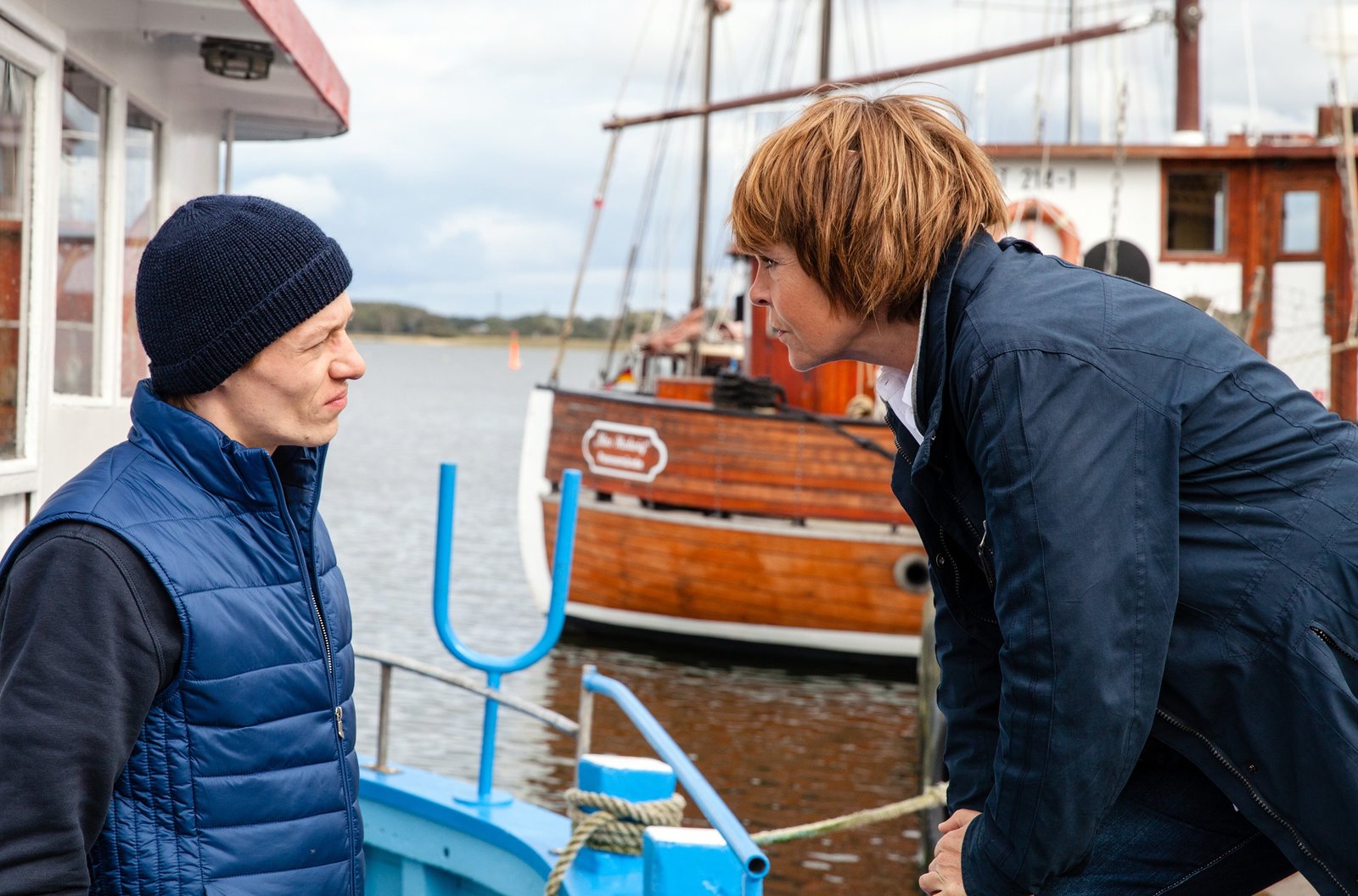 GeisterschiffKarin Lossow (Kathrin Sass) hilft Jens Kampwirth (Vincent Krüger) als ehrenamtliche Konfliktberaterin.Bild: © NDR/ARD-Degeto/Maor Waisburd