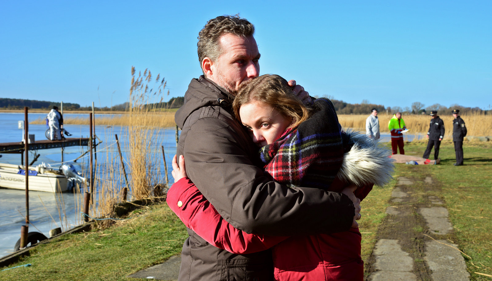 GeisterschiffEin Raubüberfall ist gescheitert: Ellen Norgaard (Rikke Lylloff) und Holm Brendel (Rainer Sellien) nehmen die Ermittlungen auf.Bild: © NDR/ARD-Degeto/Maor Waisburd