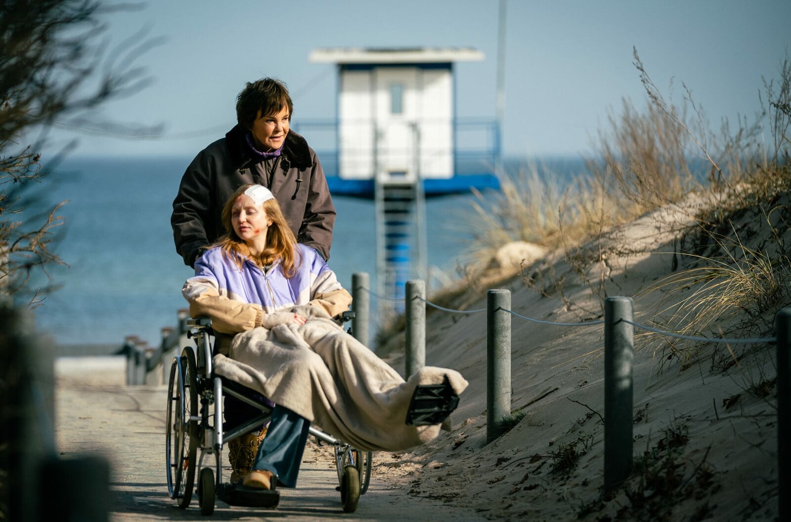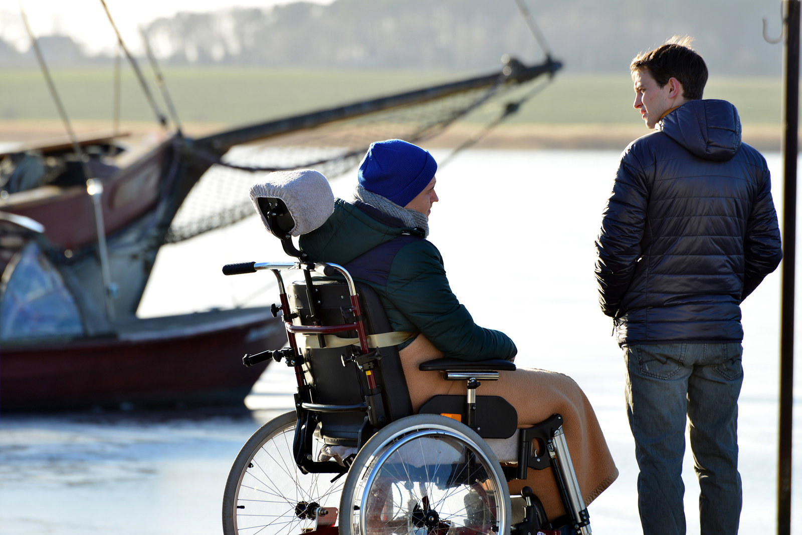 MörderhusDer Polnische Pfleger Janek (Mateusz Dopieralski) kümmert sich um den im Rollstuhl sitzenden Thomas (Merlin-Victor Faaß).Bild: © rbb/NDR/Christiane Pausch