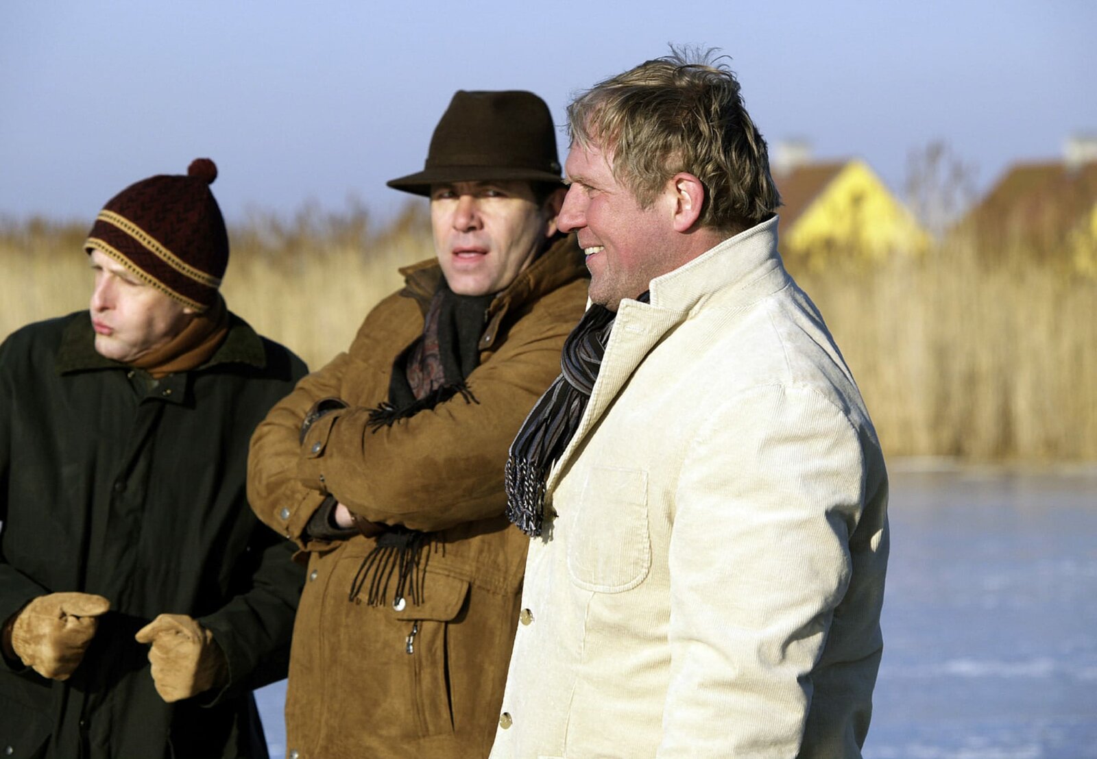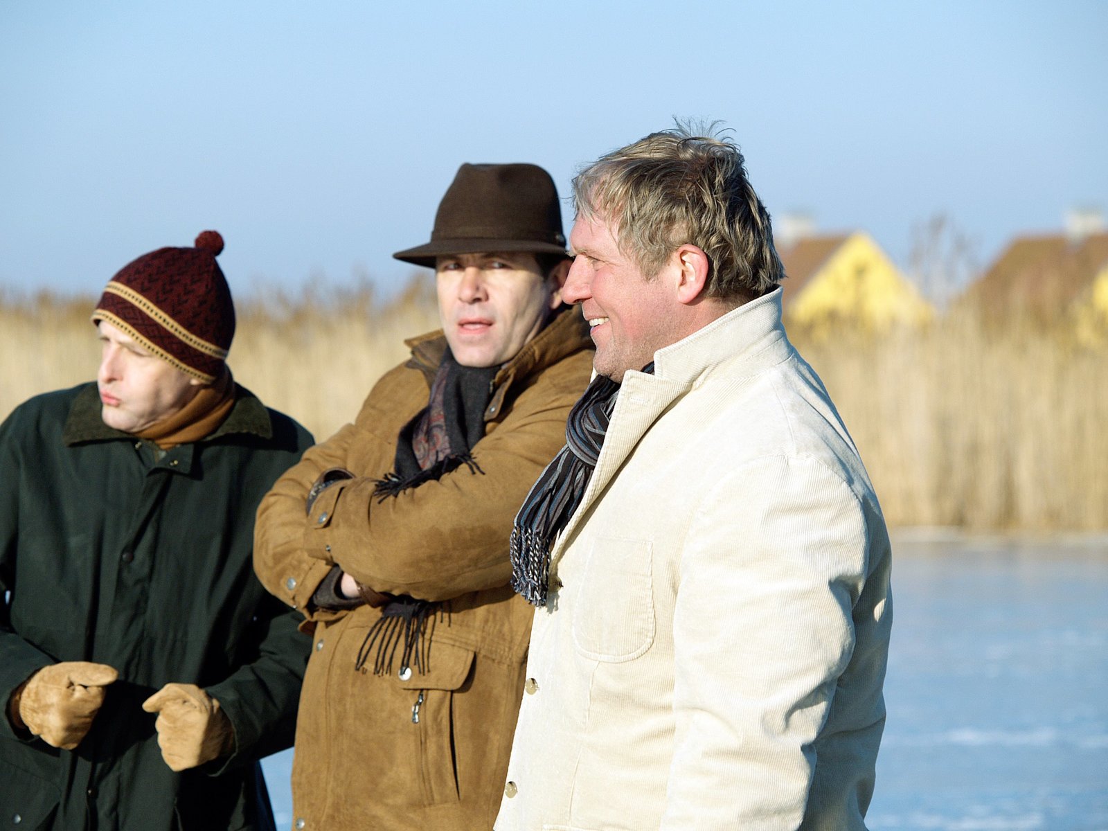 Wenn das nur gut geht!Beim jährlichen Eisstock-Turnier treffen die Rivalen Georg (Stefan Fleming, mi.) und Thomas (Harald Krassnitzer, re.) in sportlicher Weise aufeinander.Bild: © ORF III