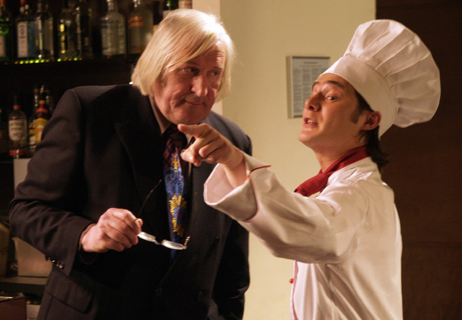 Ausflug mit FolgenDer Koch (Stermschegg) beklagt sich über die unqualifizierte Kritik der Gäste beim Geschäftsführer (Rafael Schuchter, links) und kündigt.Bild: © BR/ARD/ORF/Miguel Dieterich