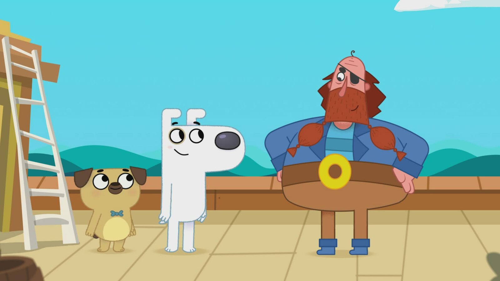 Die Geschichte vom Hut des KapitänsDem Piraten, den Dog und Puck begegnen, fehlt der Kapitänshut.Bild: © KiKA/Dog Loves Productions Limited 2020