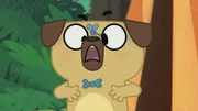 Die Geschichte von der GrinsekatzeEin riesiges Insekt lässt sich auf Pucks Nase nieder.Bild: © KiKA/Dog Loves Productions Limited 2020