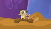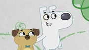 Die Geschichte vom Mädchen mit viel FantasieAuf einem Hundekeks können Puck und die Ladenmaus durch Dogs Körper surfen.Bild: © KiKA/Dog Loves Productions Limited 2020