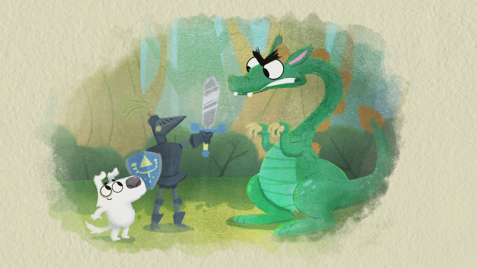 Die Geschichte von einer unterirdischen DinosaurierweltWährend Dog auf Kunden wartet, liest er Bücher über Ritter und Drachen…Bild: © KiKA/Dog Loves Productions Limited 2020