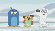 Die Geschichte vom schlauen RoboterVielleicht können Dog und Puck der Pinguindame mit einem kleinen Ständchen einheizen?Bild: © KiKA/Dog Loves Productions Limited 2020