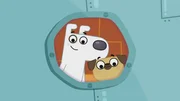 Die Geschichte von Dogs erstem BuchOma Puck, Dog und Puck verabschieden sich voneinander.Bild: © KiKA/Dog Loves Productions Limited 2020