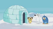 Die Geschichte vom schlauen RoboterDog und Puck helfen der frierenden Pinguindame und bauen ihr einen Iglu.Bild: © KiKA/Dog Loves Productions Limited 2020