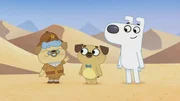 Die Geschichte von Dogs erstem BuchDog und Puck reisen ins Alte Ägypten, um die Pyramiden zu erkunden.Bild: © KiKA/Dog Loves Productions Limited 2020