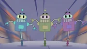 Die Geschichte von einer magischen MissionDie Faktoboter wollen auch Dog und Puck in die Fakten-Kisten stopfen.Bild: © KiKA/Dog Loves Productions Limited 2020
