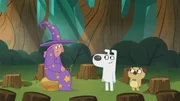 Die Geschichte von der kleinen HexeDie kleine Hexe klagt Dog und Puck ihr Leid.Bild: © KiKA/Dog Loves Productions Limited 2020