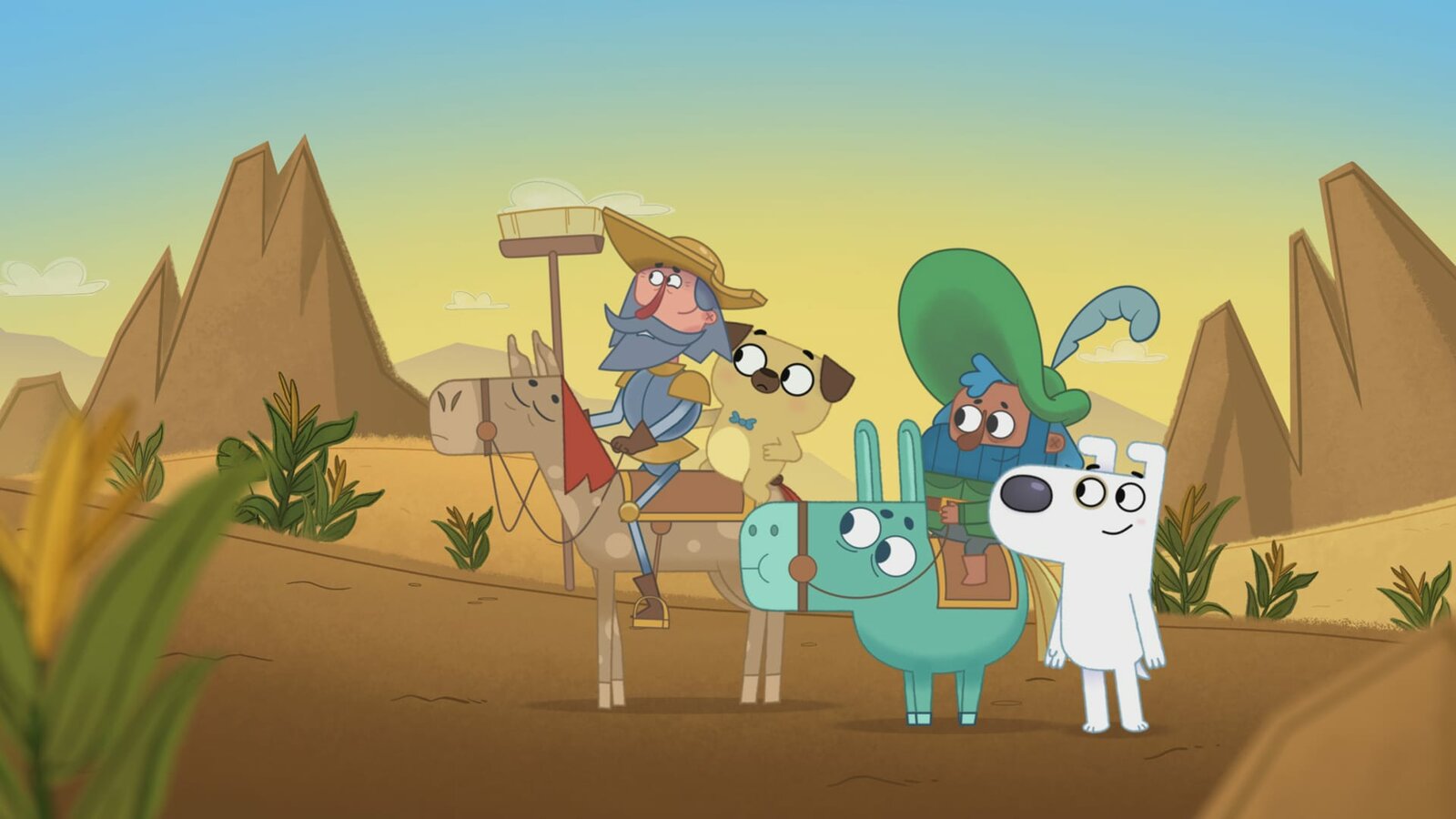 Die Geschichte von einer magischen MissionIn der spanischen Hochebene treffen Dog und Puck auf Don Quijote und seinen treuen Knappen Sancho Panza.Bild: © KiKA/Dog Loves Productions Limited 2020
