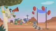 Die Geschichte von Pucks WeltrekordversuchIm Inneren der Erde treffen die Hunde auf eine Familie hochentwickelter Dinosaurier.Bild: © KiKA/Dog Loves Productions Limited 2020