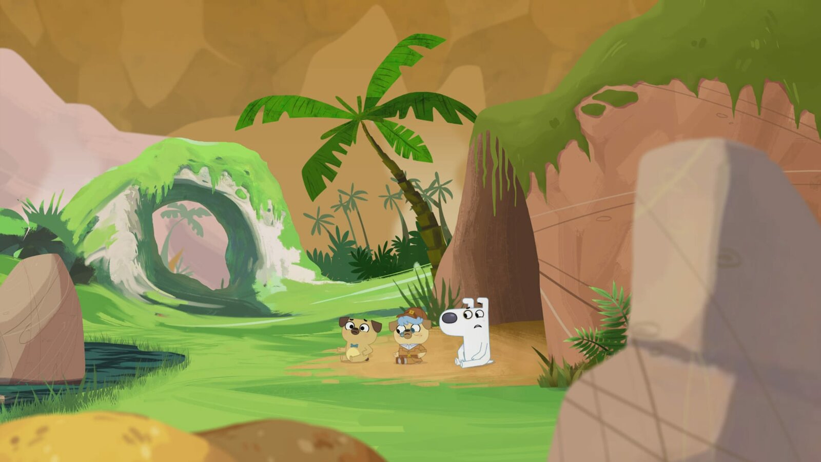 Die Geschichte von Pucks WeltrekordversuchAm Ende der Rutsche erwartet die Abenteurer eine große Überraschung.Bild: © KiKA/Dog Loves Productions Limited 2020