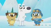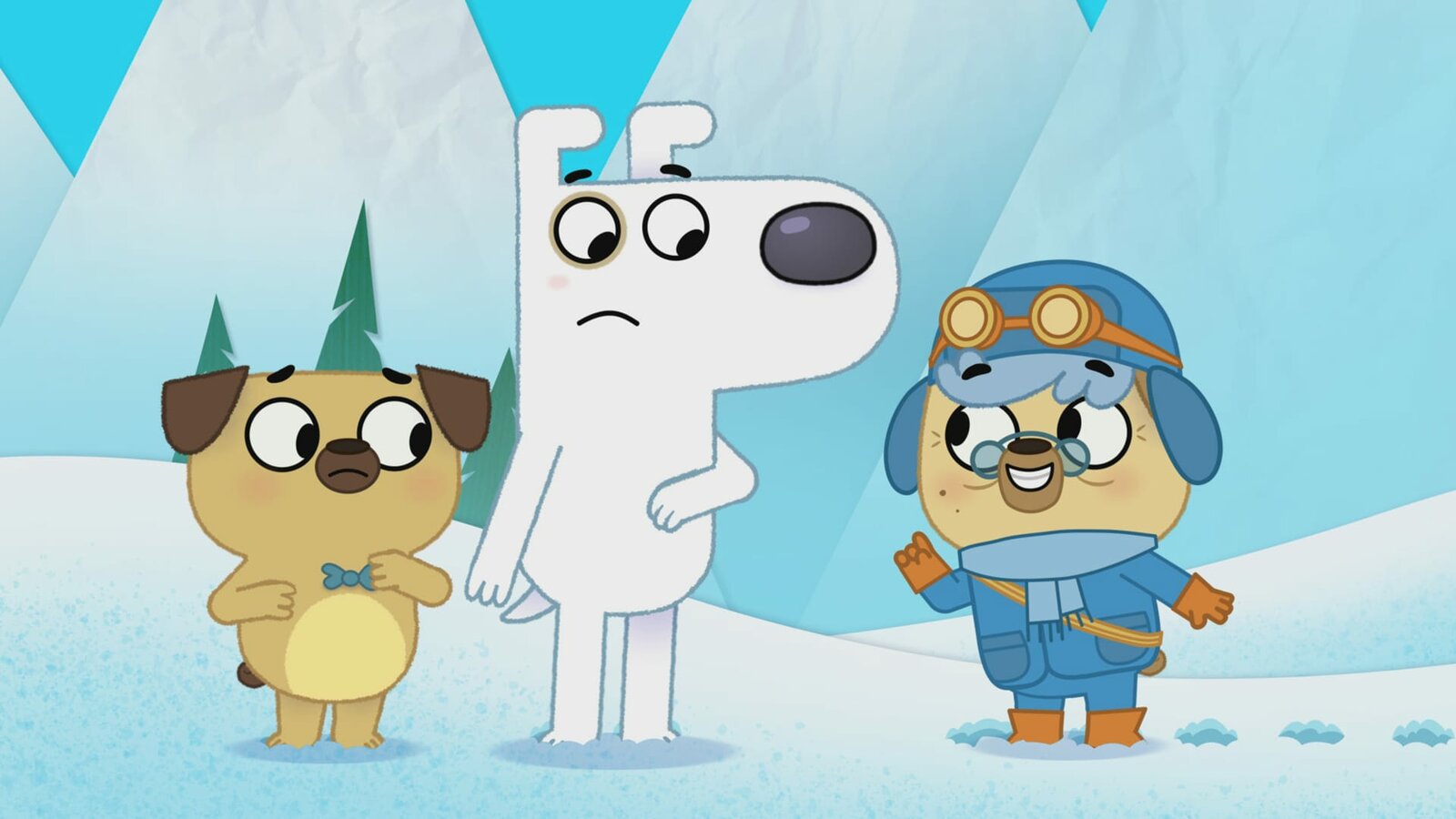 Die Geschichte von der Suche nach dem YetiDog und Puck machen sich mit Oma Puck auf die Suche nach dem Yeti.Bild: © KiKA/Dog Loves Productions Limited 2020
