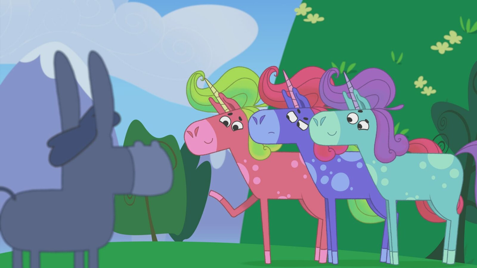 Die Geschichte von einer magischen MissionDoris entdeckt, dass sich die drei gemeinen Einhörner hinter der magischen Stimme verborgen haben.Bild: © KiKA/Dog Loves Productions Limited 2020