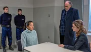 Borcherts FallThomas Borchert (Christian Kohlund, 2. v. re.) und Anwältin Dominique Kuster (Katrin Bauerfeind, re.) kümmern sich um die verängstigte Haushaltshilfe Amihan Singh (Kotti Yun), die in U-Haft sitzt.Bild: © ARD Degeto/Graf Film/Václav S. Sadilek