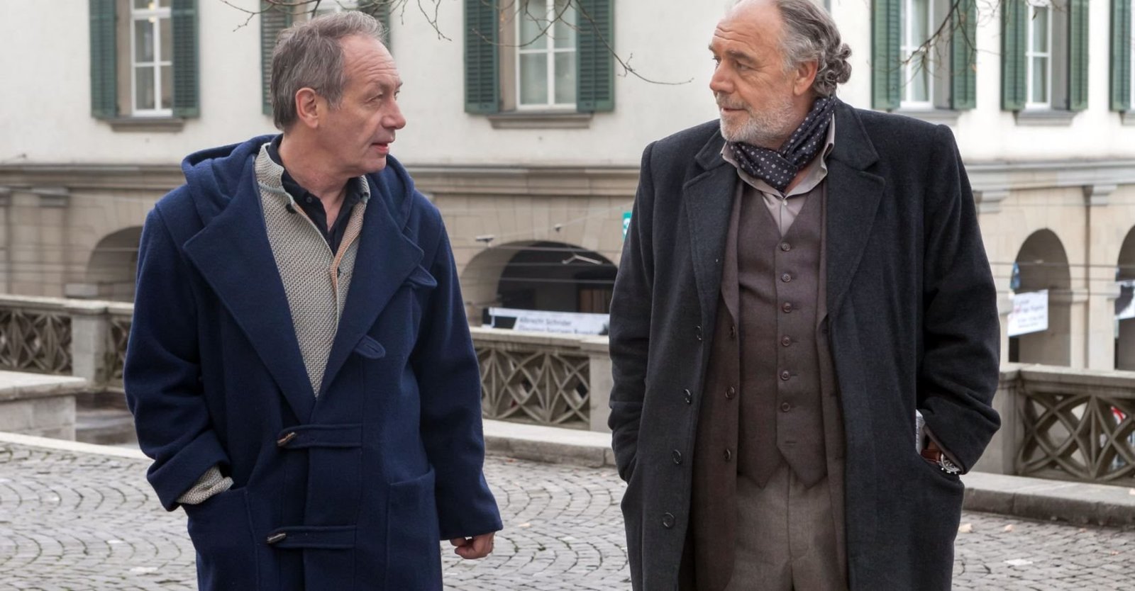Borcherts FallAlte Freunde, die sich fremd sind: Thomas Borchert (Christian Kohlund, re.) und Staranwalt Reto Zanger (Robert Hunger-Bühler).Bild: © ARD Degeto/Graf Film/Salvatore Vinci