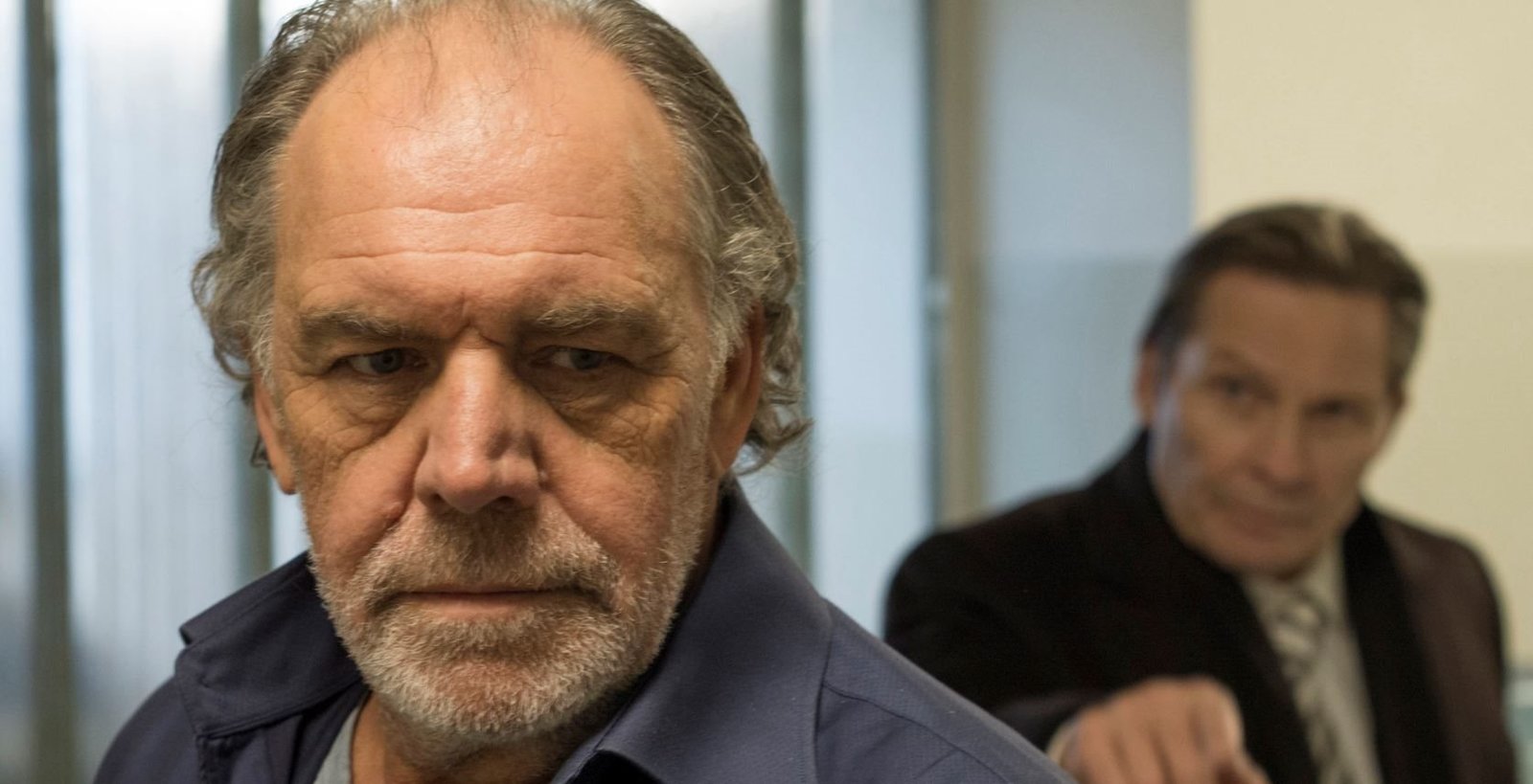 Borcherts AbrechnungDie Enthüllungen setzen Thomas Borchert (Christian Kohlund) stark zu. Der investigative Journalist Max Friedländer (Dominik Weber, hinten) beobachtet ihn.Bild: © ARD Degeto/Nicolay Gutscher