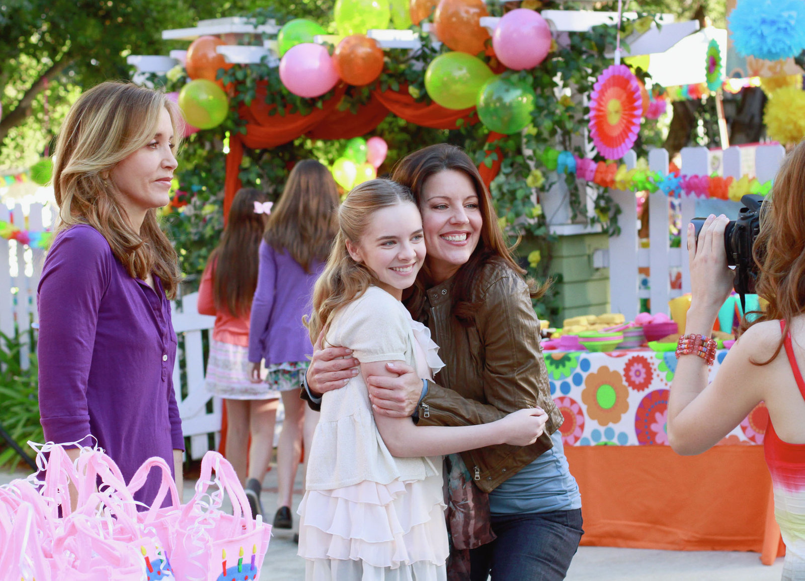 Tod eines NachbarnGeburtstagskind zwischen zwei Rivalinnen: Felicity Huffman als Lynette Scavo, Darcy Rose Byrnes als Penny Scavo, Andrea Parker als JaneBild: © SRF/ABC Studios