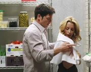 OpferGerade als Lynette (Felicity Huffman, r.) und Rick (Jason Gedrick, l.) den Arbeitstag mit einem gemütlichen Abendessen zu zweit ausklingen lassen, wird die Pizzeria von zwei Gangstern überfallen. Die Ganoven sperren die beiden in den Kühlraum, wo sie die ganze Nacht verbringen müssen ...Bild: © Disney Channel