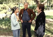 TreibgutLynettes Stiefvater Glen (Richard Chamberlain, M.) erscheint bei den Scavos und das Wiedersehen zwischen ihm und Lynette (Felicity Huffman, l.) fällt äußerst herzlich aus. Die beiden versuchen Stella (Polly Bergen, r.) im Park zu treffen ....Bild: © ABC / Walt Disney Television