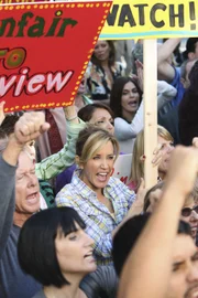 Der AufstandRuft alle Nachbarn zu einer Demonstration auf, um Pauls Plan zu verhindern: Lynette (Felicity Huffman, M.) ...Bild: © Glitz