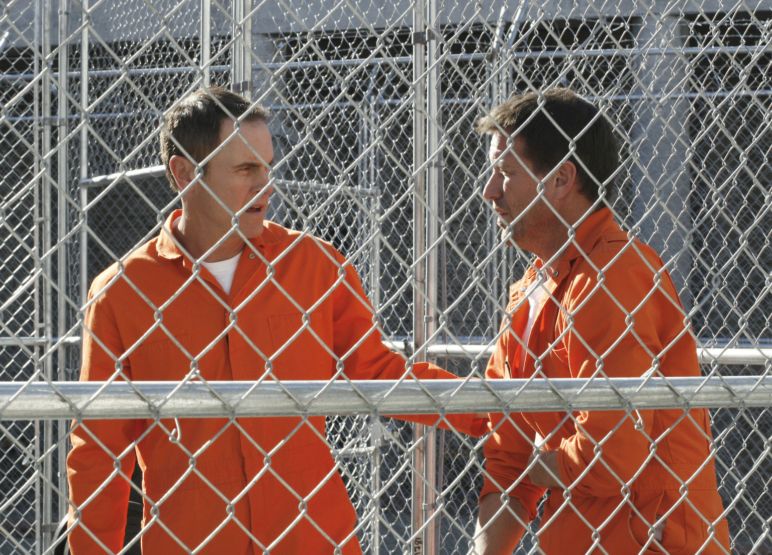 Heimliche LiebschaftenMike (James Denton, r.) wird im Gefängnis von zwei Insassen zusammengeschlagen und ausgerechnet Paul (Mark Moses, l.) kommt ihm zu Hilfe, der allerdings ein fieses Spiel spielt ...Bild: © 2005 Touchstone Television All Rights Reserved Lizenzbild frei