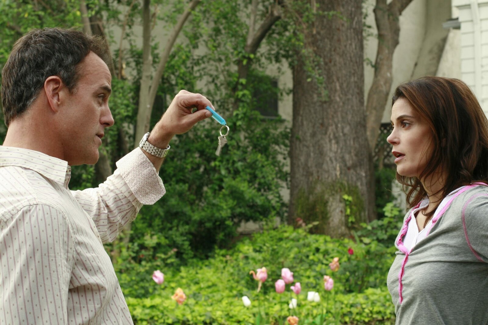 Erinnerungen (2)Streit um Unschuldslamm: James Denton als Mike Delfino, Teri Hatcher als Susan Mayer, Richard Burgi als Karl Mayer (Copyright SRF/ABC Studios)Bild: © SF