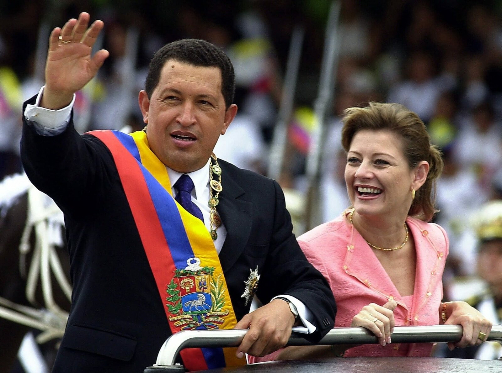 Madina Amin - Ex-First-Lady von UgandaWegen notorischer Untreue verließ sie ihn: Marisabel Rodríguez, Journalistin und zweite Ehefrau von Venezuelas Präsident Hugo Chávez, hier am Unabhängigkeitstag am 5. Juni 2001 in Caracas, strebte nach der Scheidung 2004 eine eigene politische Karriere an.Bild: © ZDF und Fernando Llano.