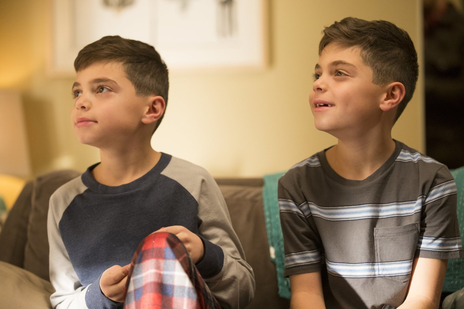 Laura und die bösen JungsCharlie Reina (Nicholas Broderick), Debra Messing, Vincent Reina (Harrison Broderick)Bild: © Warner Bros