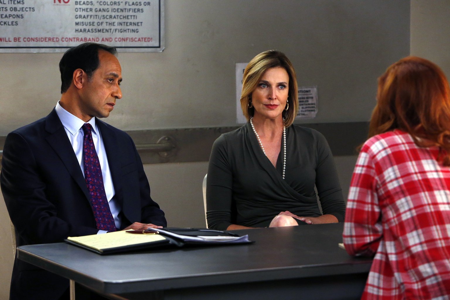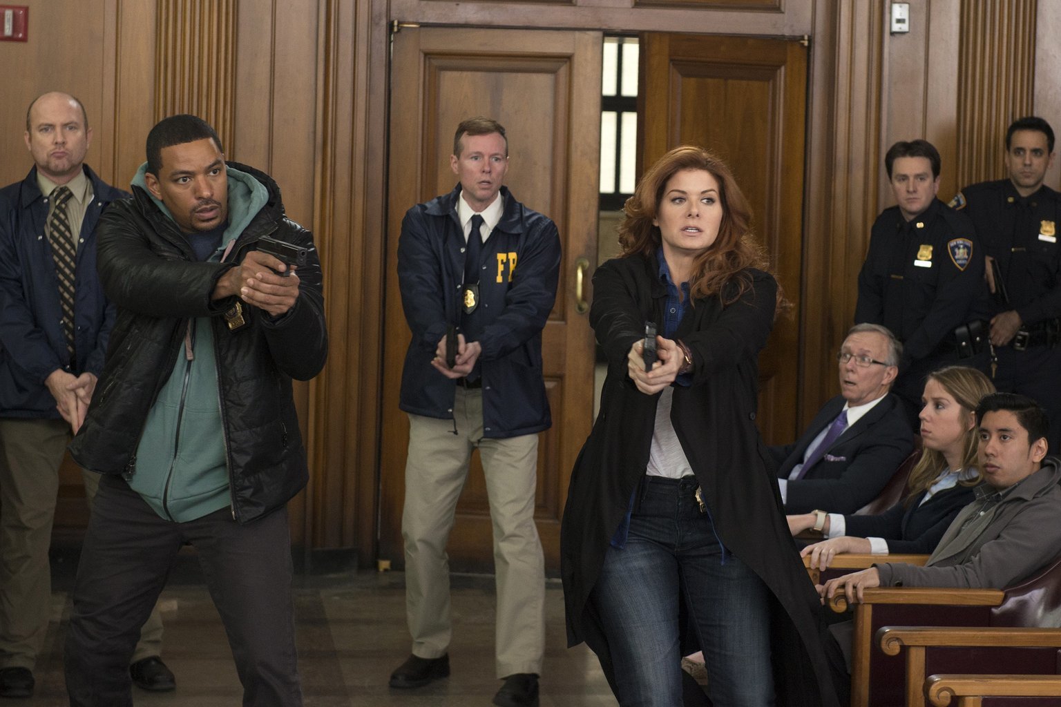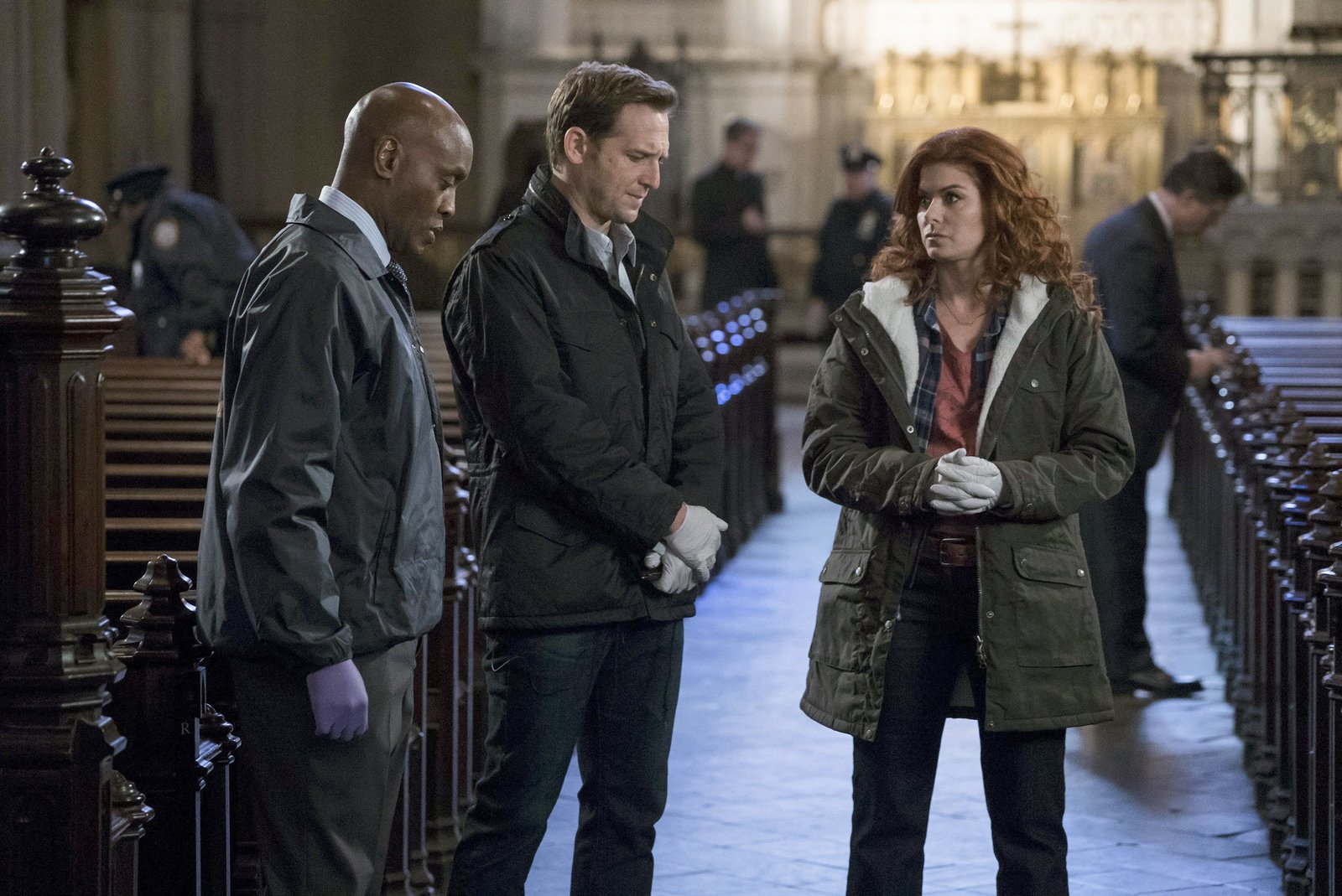 Laura und der ungelöste FallAls Lauras (Debra Messing, l.) Captain, Dan Hauser (Enrico Colantoni, r.), einen Mord beging, hat er das Vertrauen seiner Kollegin und engen Freundin für immer verloren ...Bild: © 2015 Warner Bros. Entertainment, Inc. Lizenzbild frei