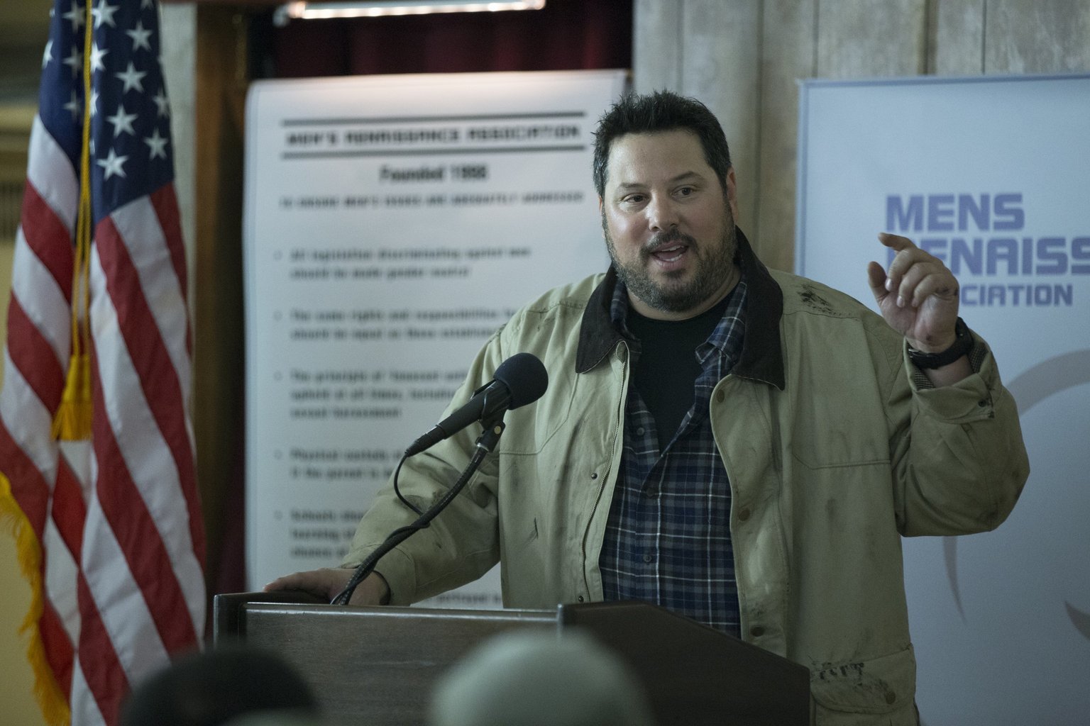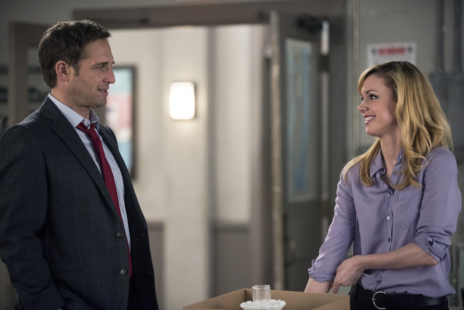 Laura und der Fremde im ZugKurt (Greg Grunberg) und der Rest der "Männerrechtsgruppe" wird des Mordes an einem berühmten Sportchirurgen verdächtigt ...Bild: © 2015 Warner Bros. Entertainment, Inc. Lizenzbild frei