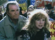 Ende gut, alles gutRockford (James Garner) rettet die Schauspielerin Laura Dean (Renee O' Connor) vor einer Horde aufgebrachter Gläubiger, die gegen ihren neuesten Film protestieren.Bild: © RTL