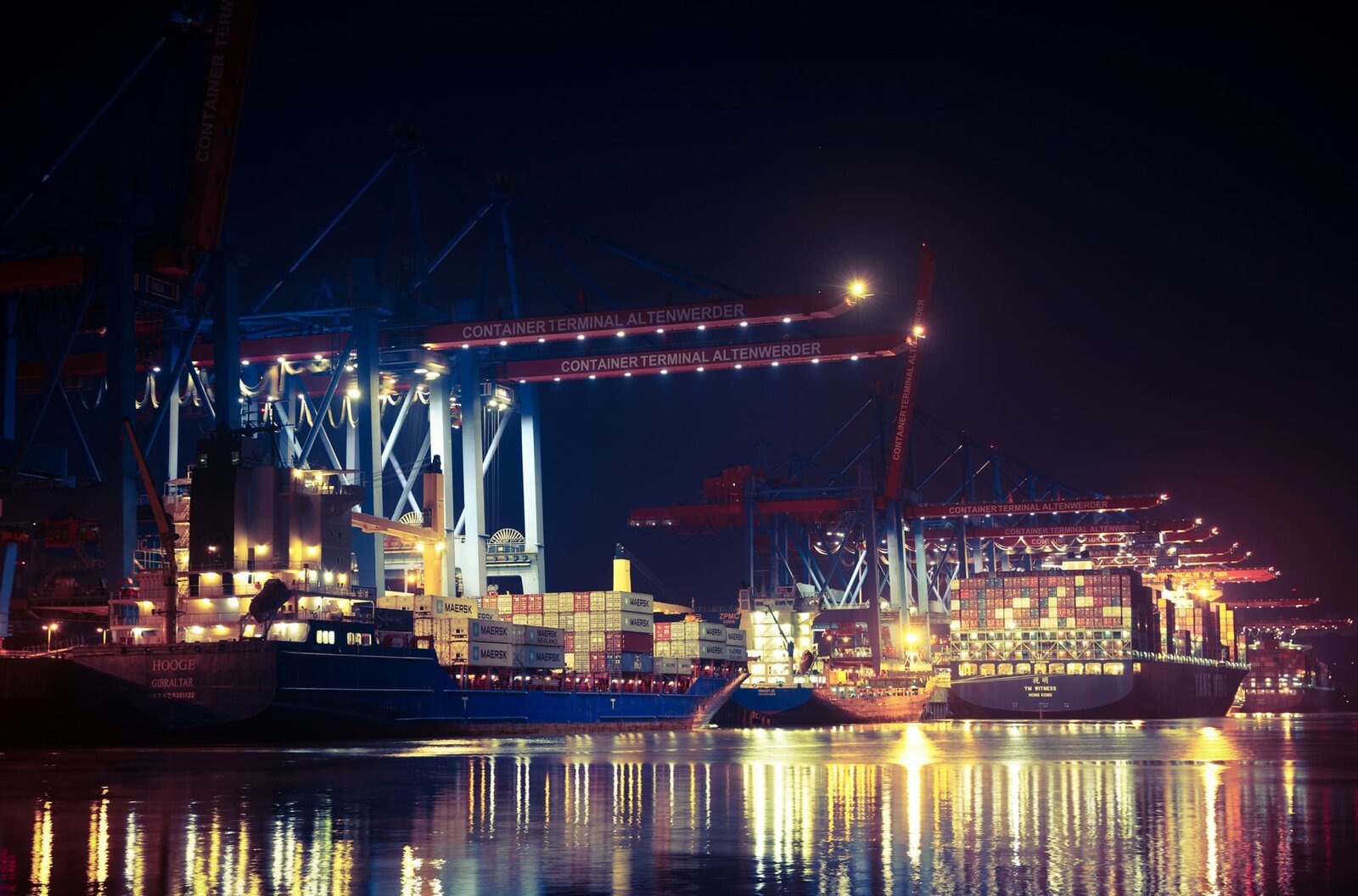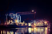 Im Zauber der DunkelheitDer Hamburger Hafen bei Nacht: Hamburger Hafen ist der größte Seehafen Deutschlands. Containerschiffe aus über 170 Ländern fahren hier rund um die Uhr ein und aus. Das Containerterminal Altenwerder gehört zu den modernsten der Welt, viele Prozesse laufen voll automatisch ab.Bild: © SWR/Ricardo Garzon Mesa