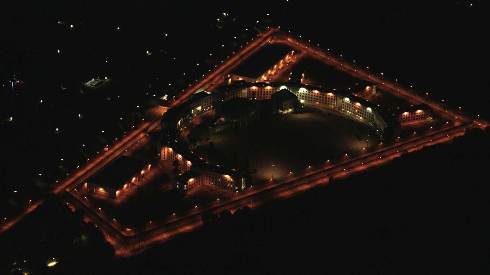 StadtGefängnis bei Nacht: Die Justizvollzugsanstalt Gelsenkirchen zeigt sich in der Dunkelheit von ihrer schönen Seite.Bild: © ZDF und Irmin Kerck.