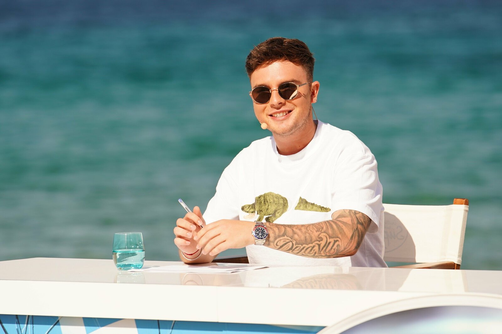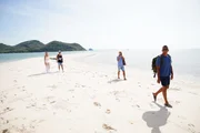 Auslands-Recall (4)Ankunft der Jury (v.l.) Oana Nechiti, Pietro Lombardi, Dieter Bohlen und Xavier Naidoo am vierten Set des Auslands-Recalls in Thailand, dem Peninsula Beach auf Koh Yao Yai.Bild: © TVNOW / Gregorowius