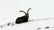 Deutschland von obenSteinböcke lieben die Berge. In den Nordalpen sind sie ab 1.800 Metern zuhause, und selbst im Winter bleiben sie oberhalb der Baumgrenze. Halten sich aber nach Möglichkeit auf schneefreien Südhängen auf, damit sie bei der Futtersuche nicht erst mühsam den Schnee, von den sowieso schon kargen Mahlzeit, scharren müssen. in Verbindung mit der Sendung bei Nennung ZDF/Peter Thompson, colourFieldBild: © ZDF/Peter Thompson