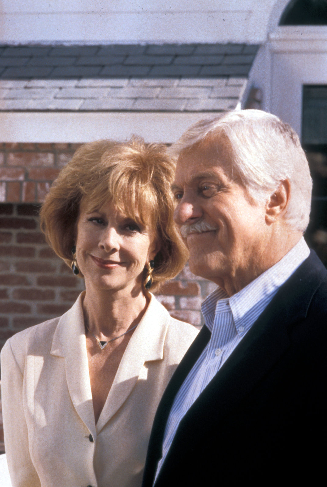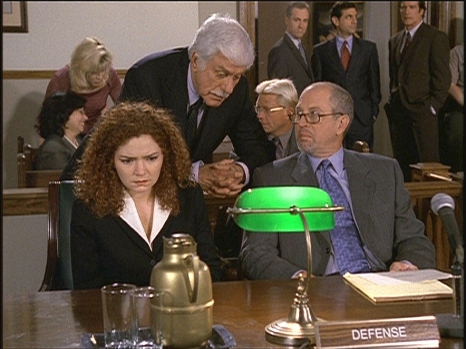 Wasserdichtes AlibiMark (Dick Van Dyke, M.) kündigt Jill (Brigid Conley Walsh, l.) und deren Verteidiger McNamara (Granville Van Dusen, r.) an, dass er einen Belastungszeugen präsentieren wird.Bild: © ProSieben Media AG © Viacom