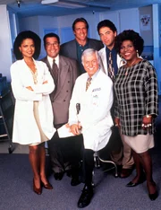 Sabotage im Rennstall(2. Staffel) - Im Leben ist nicht immer nur alles eitel Sonnenschein (v.l.n.r.): Dr. Robert Chase (Jesse Spencer), Dr. Allison Cameron (Jennifer Morrison), Dr. Eric Foreman (Omar Epps), Dr. Gregory House (Hugh Laurie), Dr. Lisa Cuddy (Lisa Edelstein), Dr. James Wilson (Robert Sean Leonard) und Stacy Warner (Sela Ward)Bild: © ProSieben Media AG © 2005 FOX BROADCASTING COMPNAY.