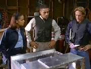 Tödliche Fracht (2)Amanda (Victoria Rowell, l.), FBI-Agent Wagner (Harry J. Lennix, M.) und Steve (Barry Van Dyke, r.) stehen fassungslos vor einem Behälter, in dem eine Atombombe transportiert wurde.Bild: © ProSieben Media AG © Viacom