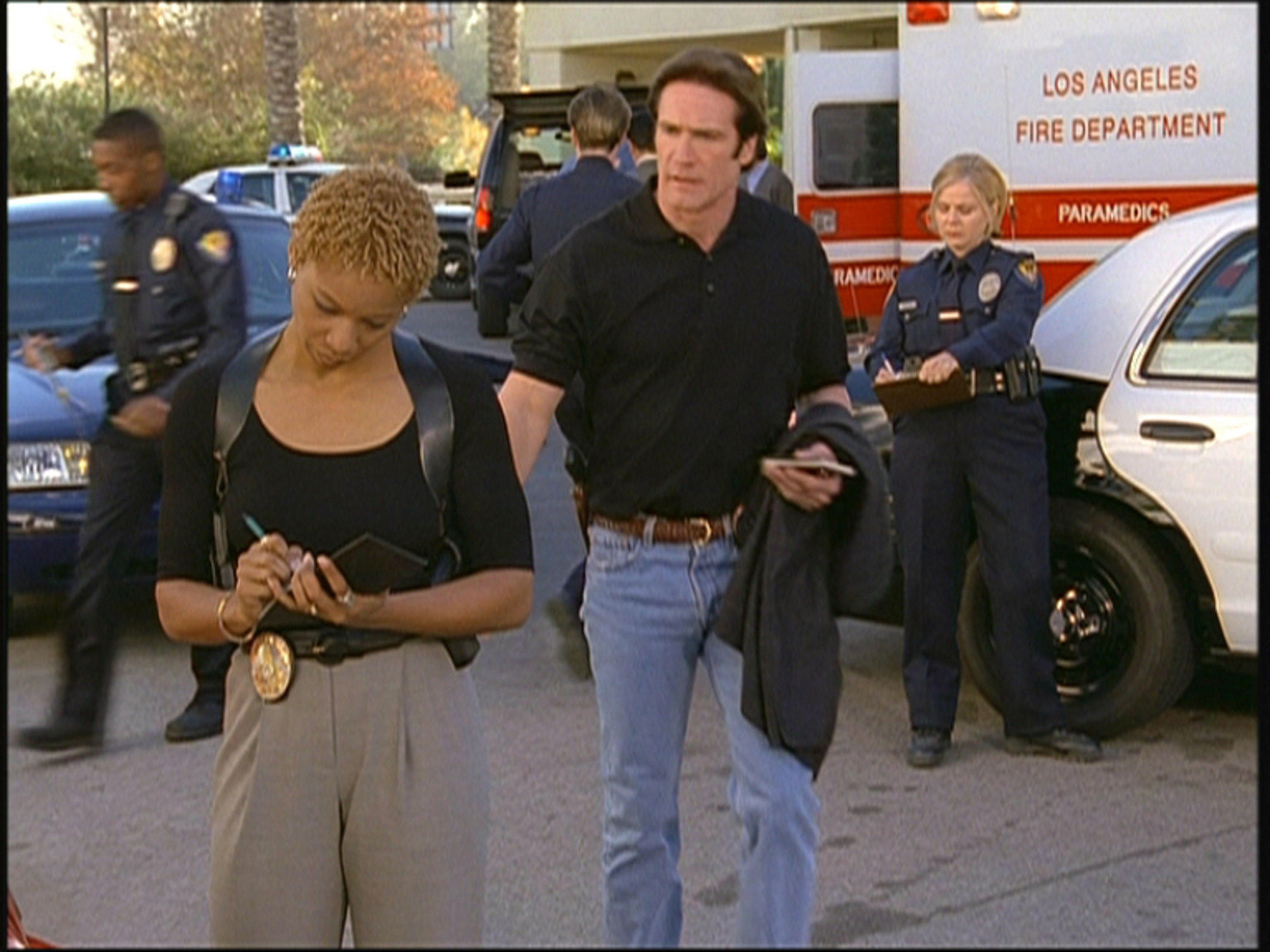 Eine Frau zuvielDie Polizistin Cheryl (Monique Edwards, l.) verpasst ihrem Kollegen Steve (Barry Van Dyke, r.) einen Strafzettel.Bild: © ProSieben Media AG © Viacom