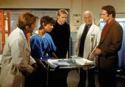 Der SchützlingAmanda (Victoria Rowell, 2.v.l.) erklärt Jessie (Charlie Schlatter, l.), Tommy (Carey Van Dyke, M.), Mark (Dick Van Dyke, 2.v.r.) und Steve (Barry Van Dyke), dass der tote Peter nicht von Tommy gezwungen wurde, sich vor einen Bus zu werfen ...Bild: © ProSieben Media AG © Viacom
