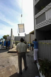 DMAX-Folge 48The clients watch from afar as ATM lifts their new aquarium.Bild: © Discovery Communications