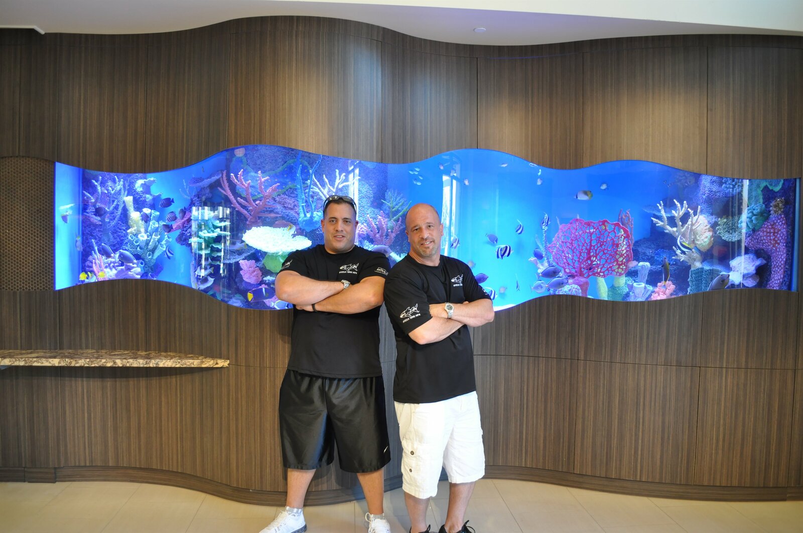 DMAX-Folge 6Wayde King and Brett Raymer with custom built Kiss fish tank found within the Kiss Monster Mini Golf Course in Las Vegas, Nevada.Wayde King and Brett Raymer from Acrylic Tank Manufacturing stand next to the custom built Kiss fish tank found within the Kiss Monster Mini Golf Course in Las Vegas, Nevada.Bild: © Animal Planet